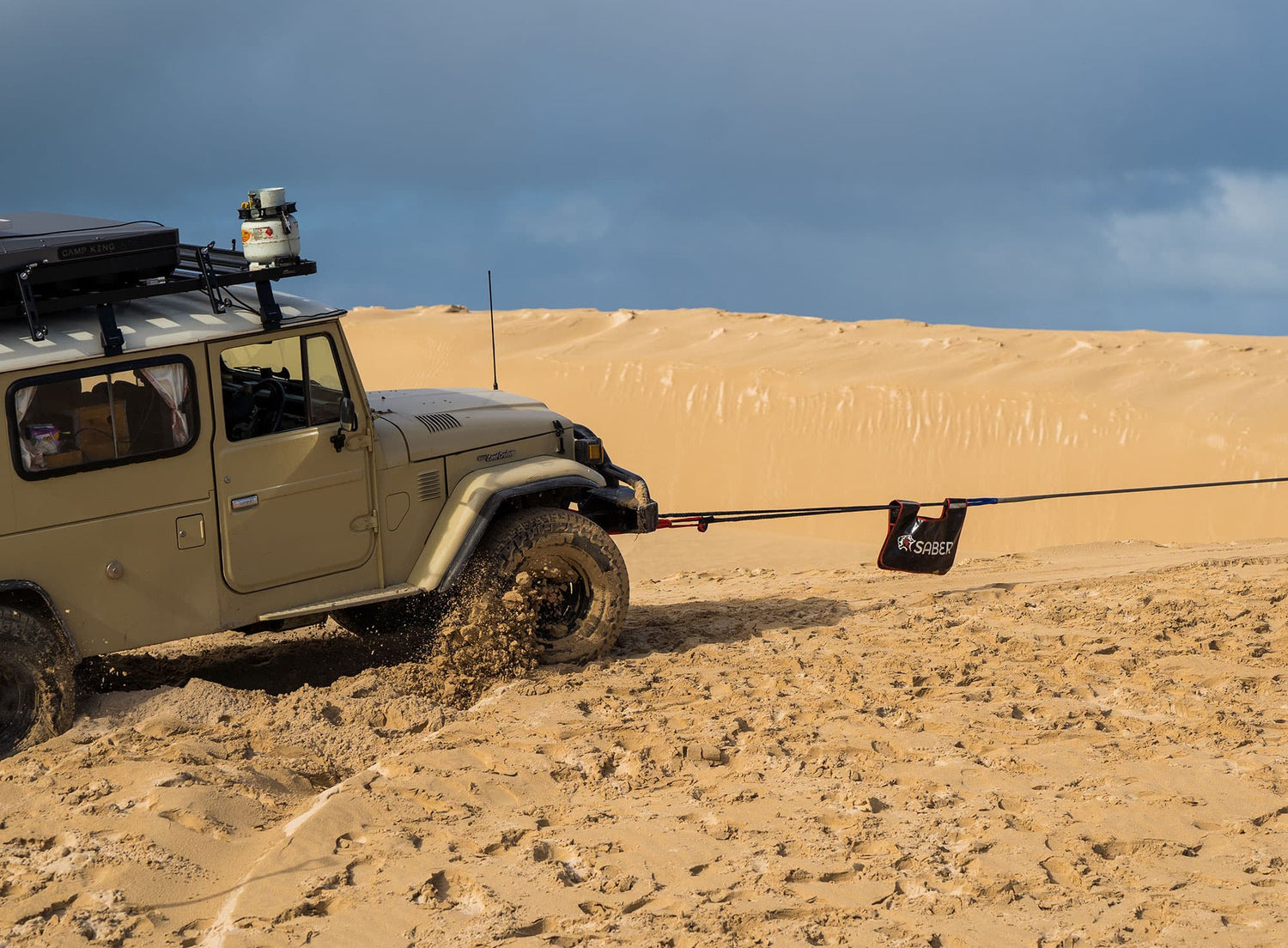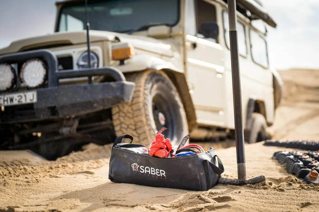 The Saber Kinetic Recovery Rope - 4,000KG, the ultimate solution for safe and efficient vehicle recoveries in challenging terrains. Engineered to provide a smoother and safer way to assist stranded vehicles in mud, sand, water, snow, and more, this kinetic recovery rope outperforms traditional snatch straps by offering up to 50% stretch, minimising strain on vehicles and ensuring a smooth recovery process in light vehicles and larger side-by-sides including Suzuki Jimny, Subaru Forester, Land Rover Discovery Sport, Nissan Xtrail and similar 4WD vehicles. Ideal for sand recoveries at the beach and general off-road recoveries.