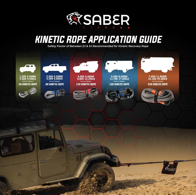• Whether this is your first 4WD recovery kit or you are upgrading your recovery gear to include kinetic ropes, the Saber Offroad 12K Ultimate Recovery Kit ensures you have the gear to get you home.